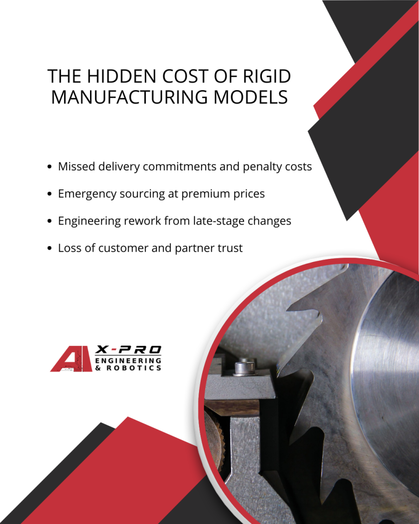 Rigid manufacturing models often appear cost-effective on paper but generate outsized losses during disruption. These costs are rarely captured in traditional efficiency metrics.